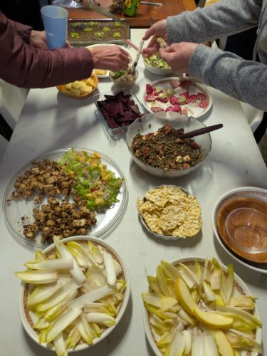 La soirée a été l’occasion d’échanges riches autour des recettes végétariennes et protéinées, mais aussi de jeux ludiques pour apprendre à reconnaître les légumineuses. Les participants ont cuisiné en équipe, expérimentant des recettes originales et savoureuses : gâteau au chocolat aux haricots rouges, cookies aux pois chiches, houmous de pois cassés, crème de tournesol, sauté de tofu, et bien d’autres encore.
