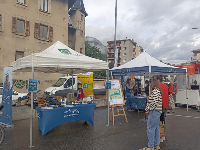 Le 10 septembre dernier, notre association Environnement & Solidarité a participé au forum de la mobilité Mobi’cime, organisé par la Communauté de communes du Briançonnais sur le marché de Briançon.